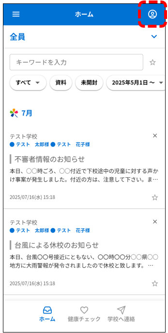 画面右上の人型マークをタップ