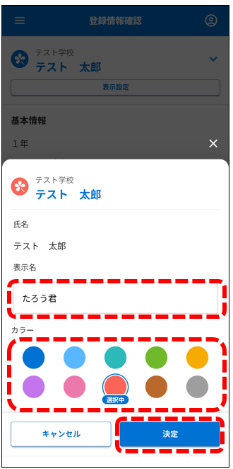 ※ここで設定した呼称や文字色は、ご自身の端末内だけで反映されます