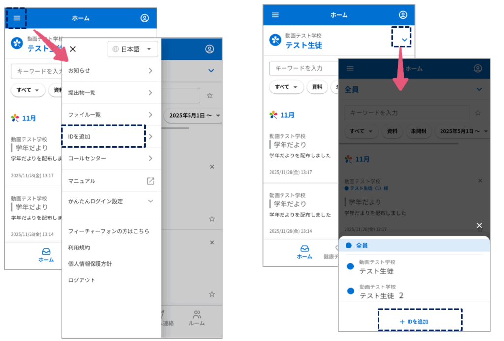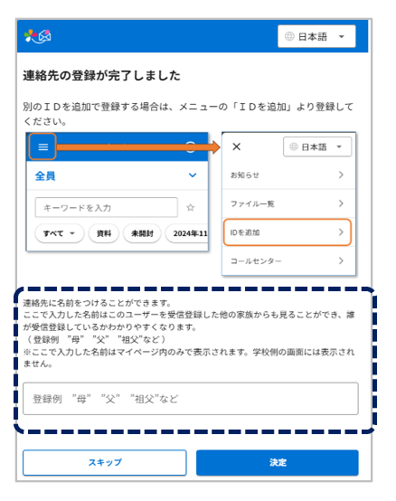 4.1.別のIDを登録(兄弟・他の学校(施設)の方を追加登録する)