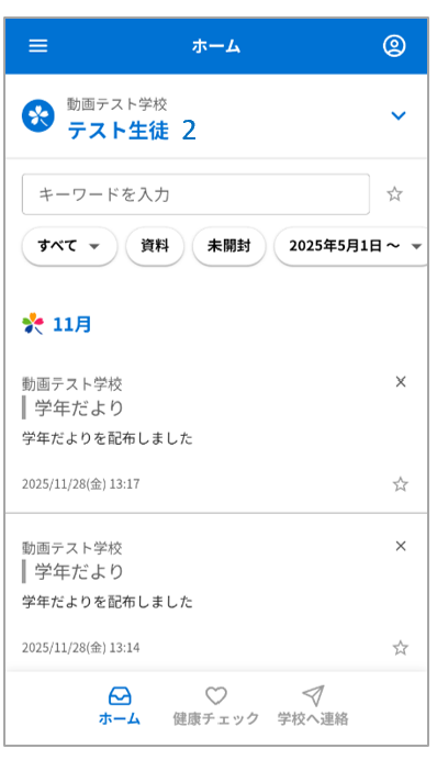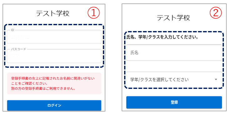 ☆入力された名前はマイページ内のみ表示され、学校側の画面には表示されません