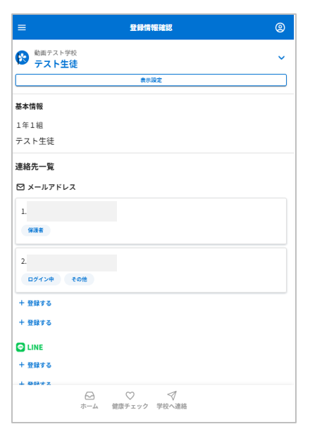 既に4件又は(LINEの場合は学校指定件数以上の登録がされている場合は古い連絡先を削除して登録を行ってください