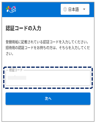 登録手順書にある 【認証コード】を入力