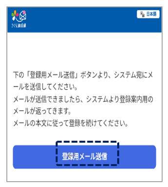 登録用メール送信をタップ