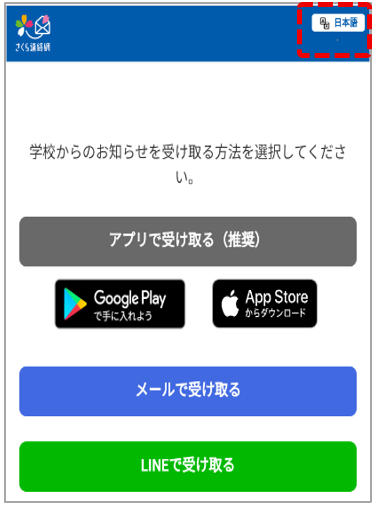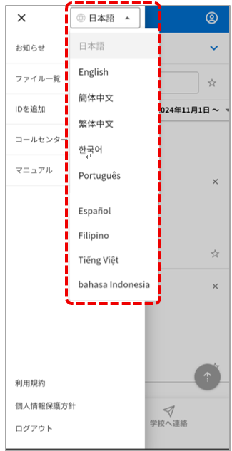 [日本語]と書かれた部分をタップし、希望の言語を選択