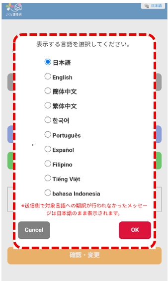 ※送信側で対象言語への翻訳が行われなかったメッセージは日本語のまま表示されます