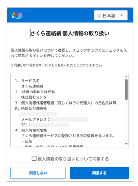 個人情報取り扱いに関する規約が表示された場合は内容を確認のうえ、チェックを入れて同意ボタンをタップしてください