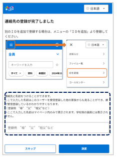 インストール済のアプリに兄弟を追加する場合は「別のIDを登録(兄弟・他の学校(施設)の方を追加登録する)」を参照ください