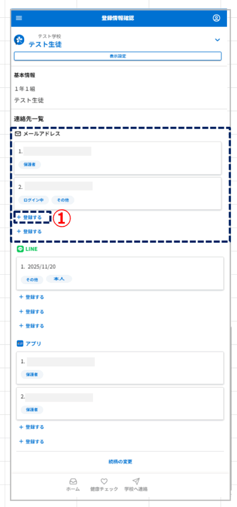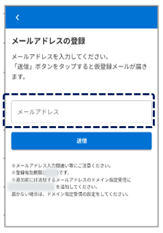 ①メールアドレスの「+登録する」をタップ
