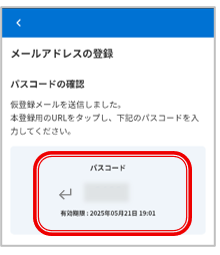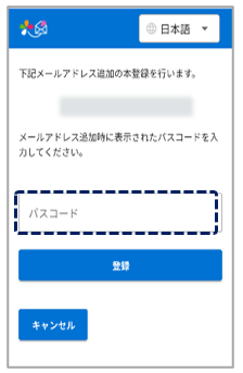 控えた【パスコード】を入力し【登録】ボタンをクリック