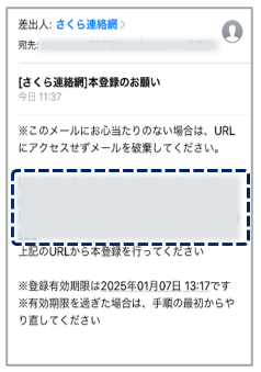 【注意】仮登録メールが届かない場合は、携帯電話の指定受信にさくら連絡網のドメイン@school-i.netを追加設定し最初から登録を行ってください