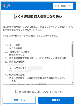 個人情報取り扱いに関する規約が表示された場合は内容を確認のうえ、チェックを入れて同意ボタンをタップしてください