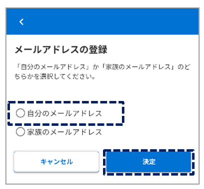 自分のメールアドレスを選択し、決定