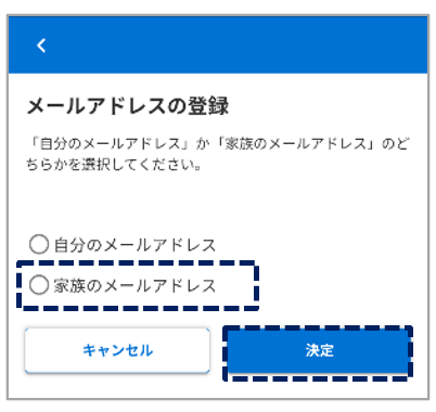 家族のメールアドレスを選択し、決定